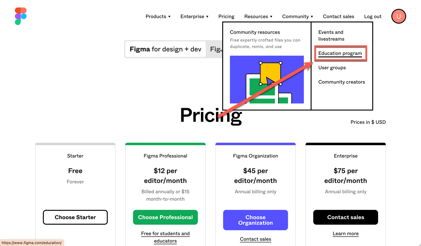 TL;DR : 直接打开网址 https://www.figma.com/education/ (opens new window)